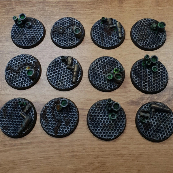 Op verzoek heb ik fabrieksvloer bases geschilderd 40mm rond 12 stuks